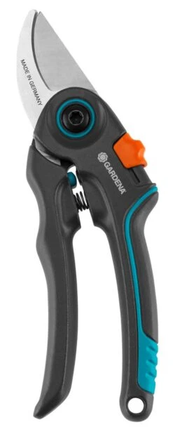 De innovatieve ExpertCut-snoeischaar van GARDENA is een uitstekende snoeischaar voor hobbytuinierders. Hecht u veel belang aan nauwkeurig en grondig werk, vakmanschap van hoge kwaliteit en robuuste gereedschappen? De ExpertCut zal niet alleen indruk op u maken vanwege zijn uitzonderlijk scherpe en slijtvaste roestvrijstalen bladen. Dankzij een extra verhardingsfase in het fabricageproces is het blad kerngehard en heeft het een hardheid van maximaal 60 HRC. Met een maximale snoeidiameter van 22 mm kunt u eenvoudig en zeer nauwkeurig talloze planten en takken snoeien. Vooral voor langer gebruik in de tuin voldoet de tuinsnoeischaar qua ergonomie en comfort aan alle verwachtingen. Met een gewicht van ongeveer 160 g is de schaar aangenaam licht en dankzij de verstelbare handvatbreedte zeer geschikt voor kleine en middelgrote handen. De schaar kan zelfs worden gebruikt door links- als rechtshandige mensen. Het handige vergrendelingsmechanisme, dat met één hand kan worden bediend, zorgt voor meer comfort en veiligheid tijdens het werken. Dit betekent dat de bladen eenvoudig kunnen worden gesloten en geopend. Na gebruik kan de ExpertCut-snoeischaar van GARDENA moeiteloos worden schoongemaakt. De gepatenteerde sapafvoer in het roestvrijstalen blad is ook erg handig tijdens het snoeien. Hierdoor blijft het blad langer beschermd tegen kleverig plantensap. De ExpertCut-snoeischaar wordt gemaakt in Duitsland. GARDENA geeft een uitgebreide garantie van 35 jaar op deze schaar van Duitse kwaliteit, wat de extreme robuustheid van de ExpertCut benadrukt.