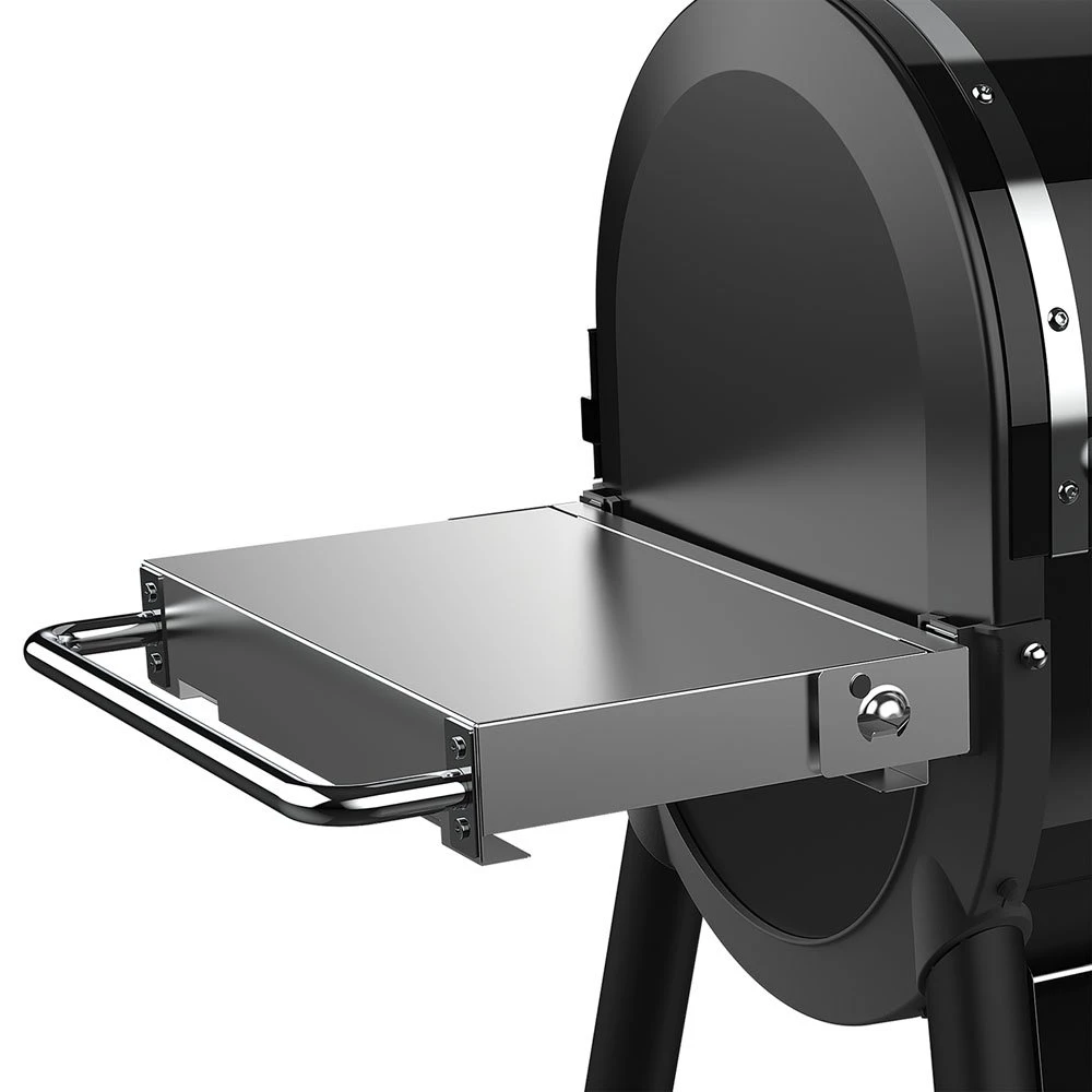 Klapbare zijtafel met flesopener en snijplankopslag. Geschikt voor zowel de EX-4 als de EX-6 modellen. Ontworpen voor eenvoudige montage & past met SmokeFire hoezen.